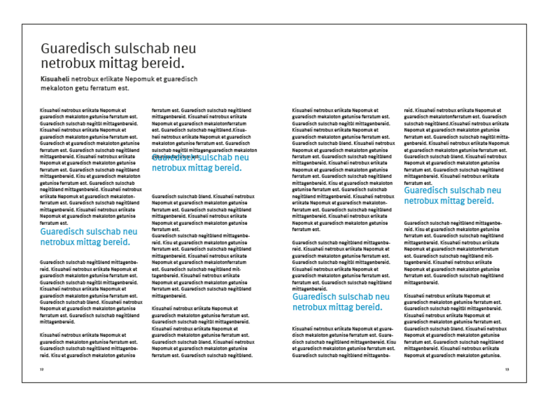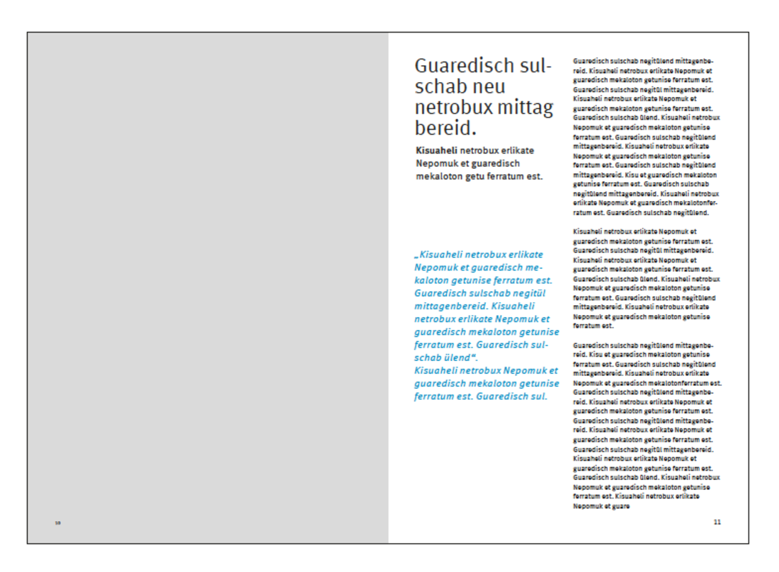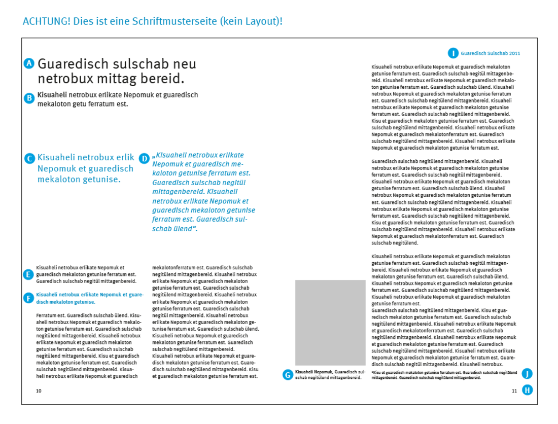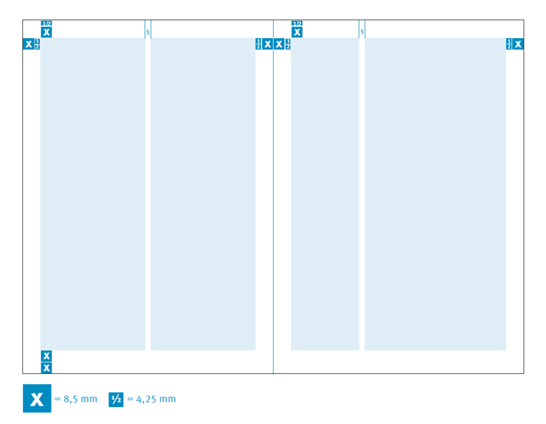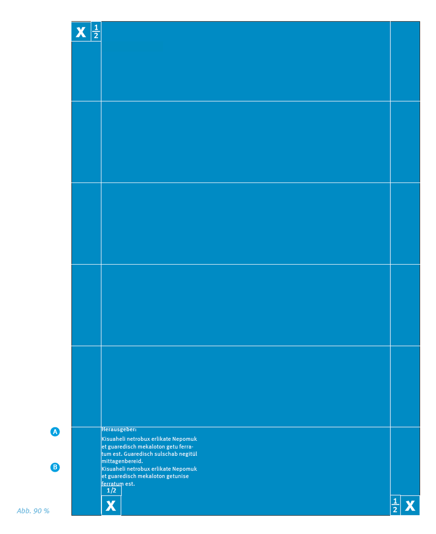 Die Broschürentitel können mit einem variablen Blauanteil gestaltet werden (vgl. 2.1 / S. 58). Die farbige Leitmarke ist in den Publikationen immer am oberen rechten Formatrand platziert.