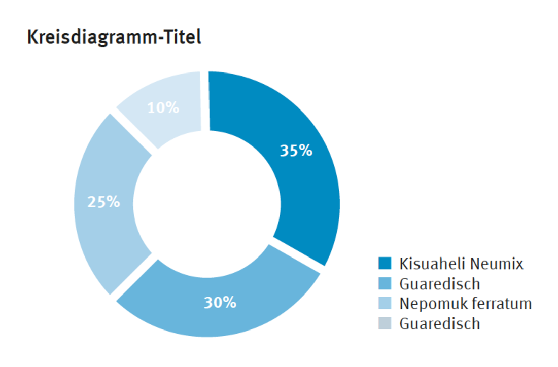 Tortenelemente und Fonds werden in 20-% -Abstufungen der Primärfarben Blau (CMYK 100/20/10/0) oder Schwarz (CMYK 0/0/0/100) aufgebaut.Farbliche Hervorhebung