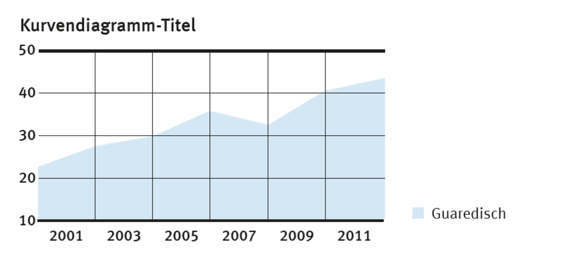 Kurvendiagramme eignen sich, um die Mengenentwicklung einer einzelnen Position darzustellen. Ein Kurvendiagramm eignet sich für detaillierte Darstellung mit einer Vielzahl von Messpunkten. Durch die Verbindung der einzelnen Punkte wird der Verlauf stärker in den Vordergrund gerückt. Da es sich um Mengenveränderungen handelt, deren Verlauf zu berücksichtigen ist, werden Kurvendiagramme so angeordnet, dass die x-Achse die Zeitachse bildet. Durch die Anlage des Rasters und seiner Abstände lässt sich die vertikale oder horizontale Wirkung der Kurve beeinflussen.