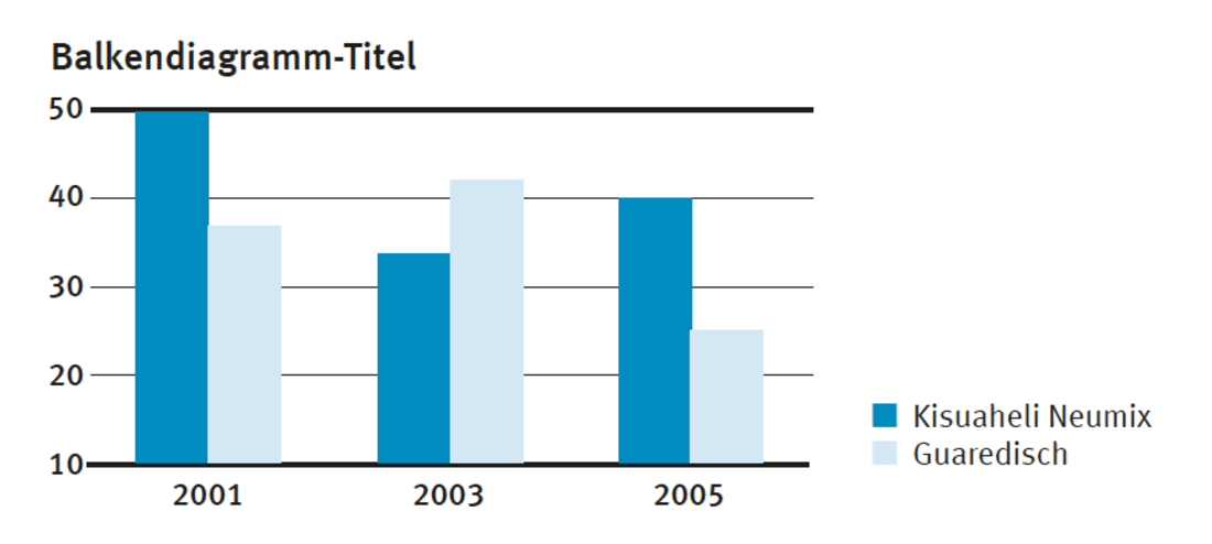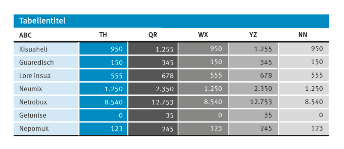 Linien werden in 1 pt, 100 % schwarz gesetzt. Graue Zwischenlinien werden in 0,25 pt, 60 % schwarz gesetzt.Balken