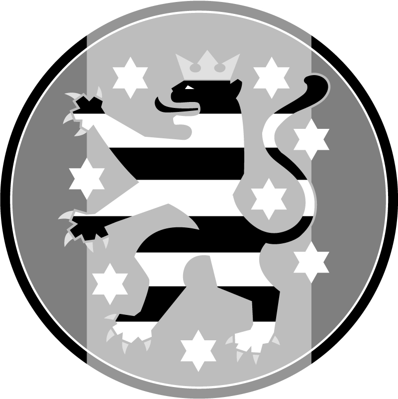 Die Farben des Signets sind Blau, Rot, Gelb und Weiß. Eine einfarbige Variante steht für Schwarz-Weiß-Umsetzungen zur Verfügung. Die entsprechenden elektronischen Vorlagen sind unter: www.thueringen.de/mhb abrufbar.